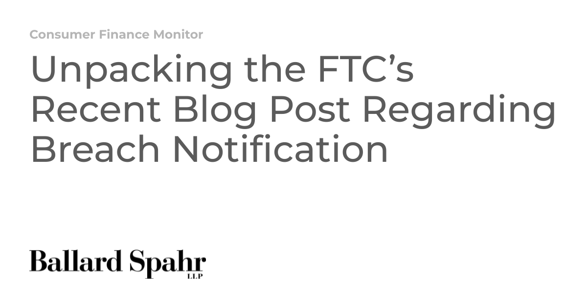 Unboxing the FTC’s Recent Breach Notification Blog Post | Ballard Spahr LLP